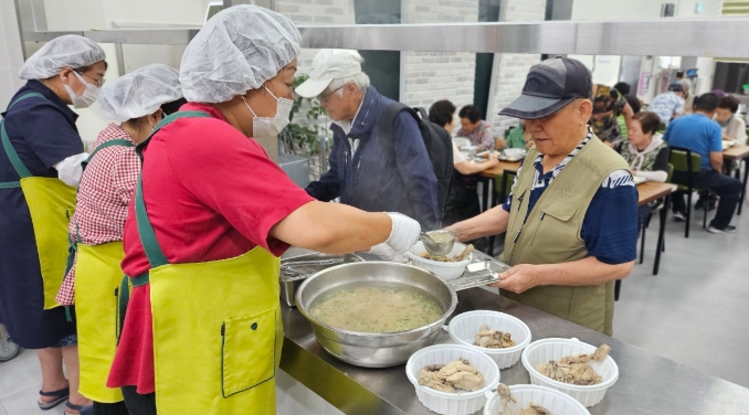 [뉴스스텝] 계룡시노인복지관은 18일 초복을 맞아 지역업체인 ㈜페리카나(회장 양희권)의 후원으로 지역 어르신들께 삼계탕을 제공했다.