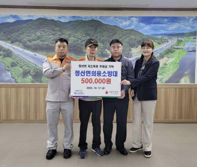 [뉴스스텝] 청산면의용소방대은 지난 17일 청산면행정복지센터를 방문해 지역사회 저소득층에게 따뜻한 온기를 나누고자 현금 50만 원을 기탁했다.