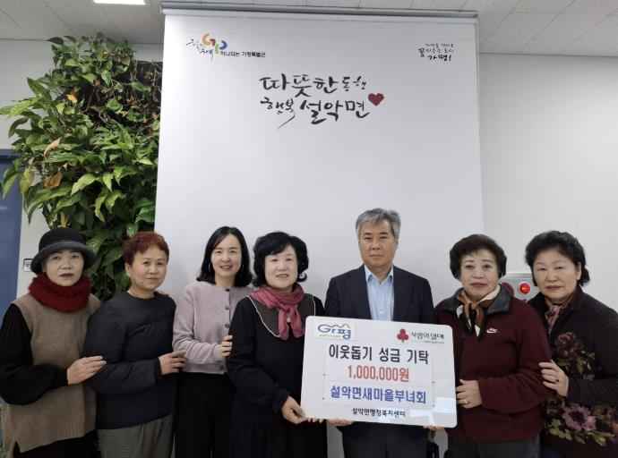 이동철 설악면장은 “설악면의 크고 작은 일을 도맡아 주시는 부녀회원들이 이웃 돌봄에도 앞장서 주셔서 감사드린다”며 “기탁해 주신 성금은 관내 취약계층을 위해 소중히 사용하겠다”고 말했다.