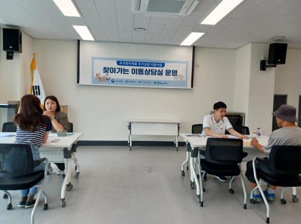 이동 상담에 참여한 주민은 “침수 우려가 있는 빌라 반지하에서 몇 년 살다 보니까 여름만 되면 조마조마한 심정이었다”라며 “동 담당자로부터 공공임대주택 입주 신청에 대한 안내를 받고 센터에서 이렇게 찾아와서 상담하고 신청서류까지 접수할 수 있어서 참 수월하게 처리했다”라고 말했다.