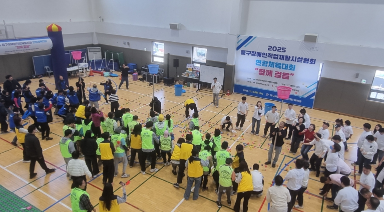 [뉴스스텝] 대구 중구는 지난 6일 대구서문교회 비전센터 체육관에서 장애인직업재활시설 이용자, 종사자, 보호자 등 200여 명이 함께한 ‘연합 체육대회’를 성황리에 개최했다.