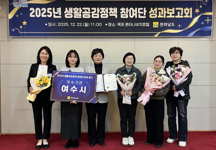 ▲ 지난 22일 목포 폰타나비치호텔에서 열린 ‘2025년 생활공감정책 참여단 성과보고회’에서 여수시가 전남도지사 기관 표창을 수상했다.