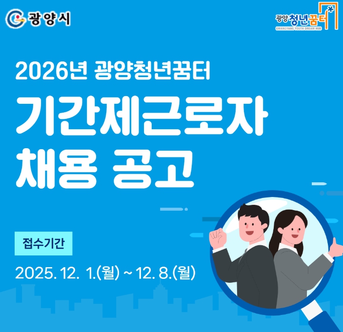 [뉴스스텝] 광양시는 2026년 한 해 동안 광양청년꿈터 운영을 함께할 기간제근로자 4명을 모집한다고 1일 밝혔다.
