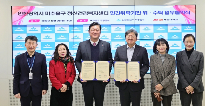 [뉴스스텝] 인천 미추홀구는 지난 8일 구청장실에서 재능대학교 산학협력단(단장 이주미)과 정신건강복지센터 위탁 운영 협약을 체결했다.
