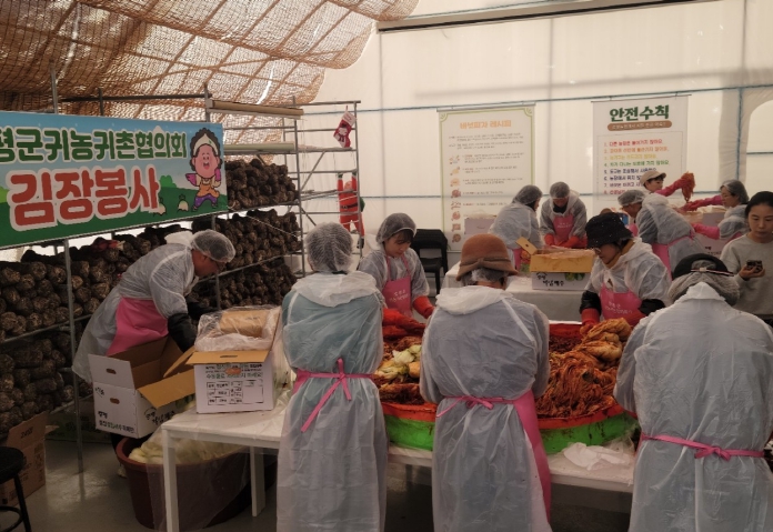 [뉴스스텝] 충북 증평군은 증평군귀농귀촌협의회(회장 신건석)가 19일 도안면 송정농원 교육장에서 ‘증평군귀농귀촌협의회 김장 나눔 봉사’활동을 진행했다고 밝혔다.