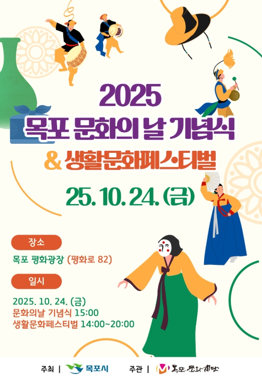 [뉴스스텝] 목포문화재단은 오는 10월 24일 오후 2시 평화광장에서 ‘2025 목포 문화의 날 기념식 및 생활문화페스티벌’을 개최한다.