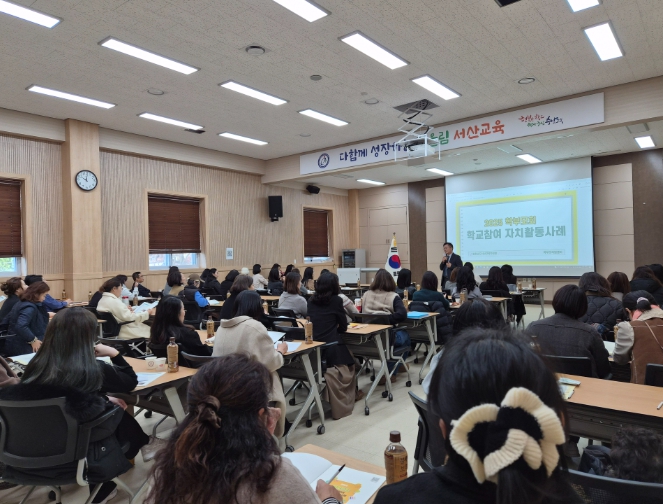 [뉴스스텝] 충청남도서산교육지원청은 12월 10일 어울림실에서 서산 관내 54교 학부모회장과 학부모 70여 명이 참석한 가운데 학부모 교육 참여 사례 나눔 자리를 진행했다.