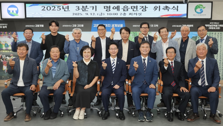 [뉴스스텝] 고창군이 12일 군청 2층 회의실에서 2025년 3분기 명예읍면장 위촉식을 열고 각 읍·면을 대표하는 명예읍면장 14명을 새롭게 위촉했다.