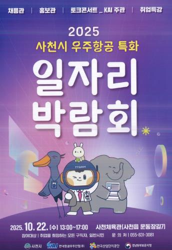 [뉴스스텝] 사천시는 오는 10월 22일 사천체육관에서 항공산업 중심의 청년 고용기회 확대를 위해 ‘2025년 사천시 우주항공특화 일자리박람회’를 개최한다.