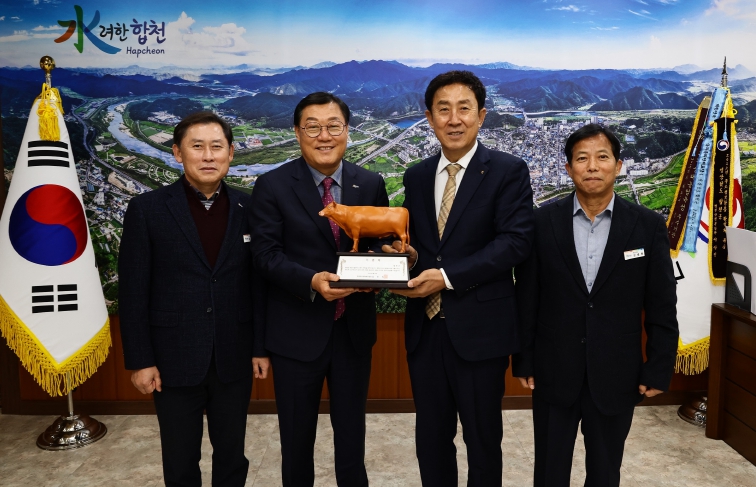 [뉴스스텝] 합천축산업협동조합(조합장 김용욱)은 10일 합천군을 방문해 합천군 농업기술센터 신청사 개청을 축하하며, 축산 홍보 및 현장 교육에 활용될 한우 모형을 기증했다.