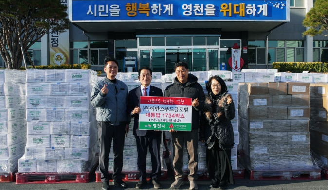 [뉴스스텝] 영천시는 지난 8일 ㈜이안스푸드글로벌이 취약계층 지원을 위해 대나무통밥 1,734박스(1억 2,100만원 상당)를 영천시에 기탁했다고 밝혔다.