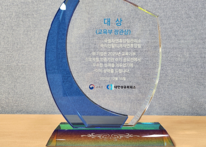 [뉴스스텝] 산림청 국립자연휴양림관리소 속리산말티재자연휴양림이 교육부와 대한상공회의소가 주관하는 교육기부 진로체험 인증기관 수기 공모전에서 대상을 수상했다고 8일 밝혔다.