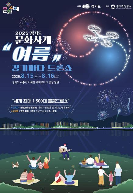 [뉴스스텝] 경기도와 경기관광공사는 오는 8월 15일부터 16일까지, 시흥 거북섬 웨이브파크 광장 일원에서 사계절 테마형 문화예술축제 ‘경기도 문화사계’의 여름 행사로 '경기바다 드론쇼'를 광복 80주년 기념 문화행사와 함께 개최한다고 29일 밝혔다.