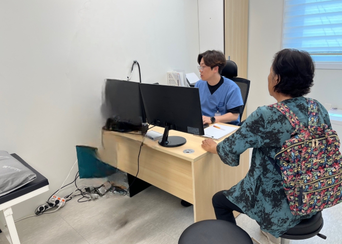 ▲ 치매관리주치의 시범사업 의료기관으로 선정된 새서울메디컬의원 의료진이 치매환자를 대상으로 맞춤형 진료 상담을 제공하고 있다. |