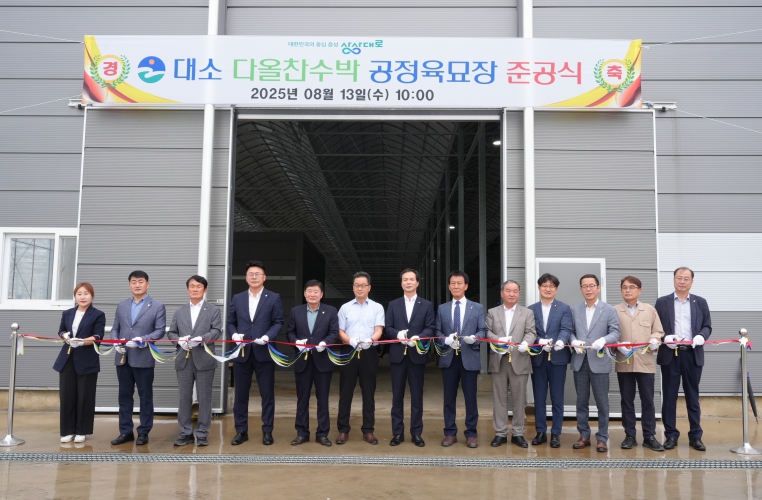 이날 준공식에는 조병옥 음성군수를 비롯한 각 기관·사회 단체장 및 대소 농협조합원 등 100여 명이 참석해 대소 다올찬수박공정육묘장 준공을 축하했다.