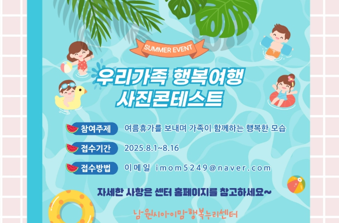 신청은 오는 7월 22일부터 7월 31일까지이며 남원시 아이맘행복누리센터 홈페이지를 통해 접수한다.