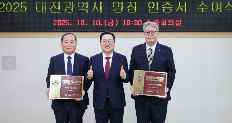 [뉴스스텝] 대전시는 10일 시청 중회의실에서 2025년‘대전광역시 명장’으로 선정된 2명에게 인증서와 인증패를 수여했다.