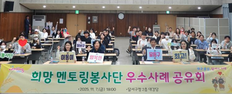 [뉴스스텝] 대구 달서구는 지난 7일 구청에서 멘토링봉사단 멘토와 멘티를 초청해 '희망 멘토링봉사단 우수사례 공유회'를 개최했다.