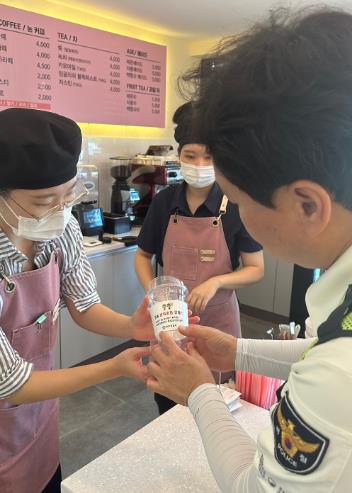 | ▲ 무안경찰, 소상공인 대상 카페 전용‘교통질서 컵홀더’배부. |