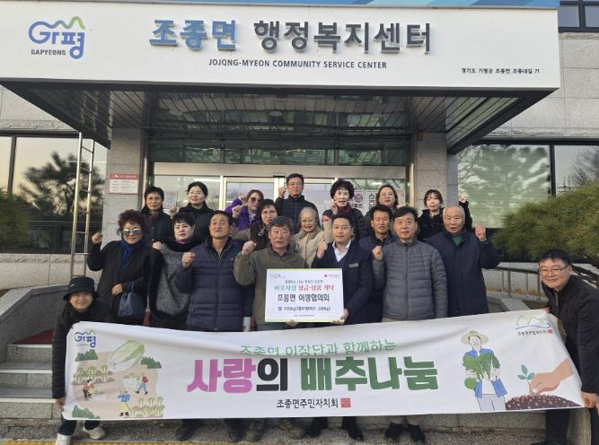 [뉴스스텝] 가평군 조종면 이장협의회와 주민자치회는 17일 조종면행정복지센터에 쌀 700kg을 기탁하며 지역 나눔 활동에 힘을 보탰다.