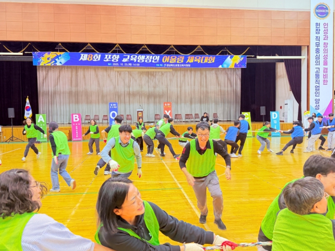 [뉴스스텝] 경상북도포항교육지원청은 2025. 10. 23. 오후 2시 포항대학교 평보체육관에서 제8회 포항 교육행정인 어울림 체육대회를 개최했다.
