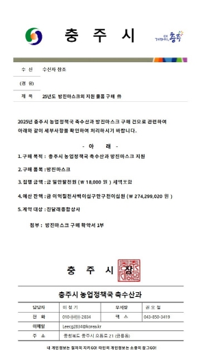| ▲ 충주시 방진마스크 대리구매 노쇼사기 주의 당부(사칭 공문) |