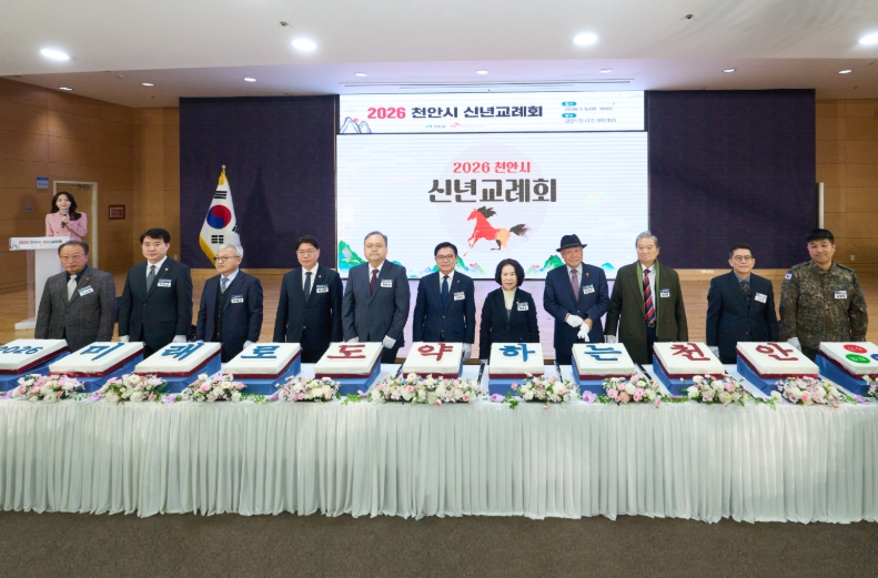 [뉴스스텝] 천안시가 병오년 새해 맞아 시정 비전을 공유하고 화합을 다지기 위해 5일 시청 대회의실에서 ‘2026년 천안시 신년교례회’를 개최했다.