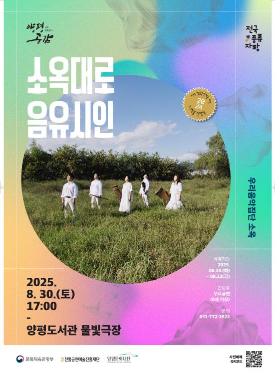 [뉴스스텝] 양평문화재단은 오는 8월 30일 오후 5시, 양평도서관 물빛극장에서 2025 시즌레퍼토리‘양평공감’의 여섯 번째 무대로, 우리음악집단 소옥 '소옥대로_음유시인' 을 선보인다.