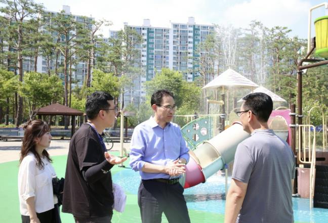 방문 현장은 ▲이목동 노송공원(주민친화 특화공원 조성) ▲솟대공원(환경개선) ▲천천동 샘내공원(환경개선) ▲송죽동 만석공원(물놀이마당 조성) ▲조원동 석산어린이공원(리모델링)으로, 주민들이 보다 쾌적하게 공원을 이용할 수 있도록 환경을 개선하고 특화된 공간을 제공하기 위한 공사가 진행 중이다.