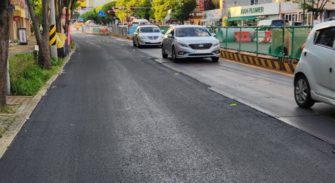 ▲ 운천저수지~금호지구입구사거리 덧씌우기 임시포장 완료 |