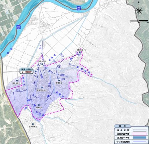영해면(성내리, 괴시리, 벌영리) 일대는 호우시 침수가 잦은 지역으로, 지난 2021년 환경부로부터 ‘하수도정비 중점관리지역으로 지정’됐으며, 이어 2023년도 하수도정비대책이 수립되면서 국비 125억 원, 총사업비 209억 원의 규모의 ‘영해배수분구(송천2) 도시침수 예방사업’이 추진되고 있었다.