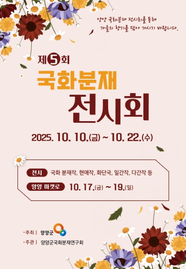 [뉴스스텝] 양양군 국화분재연구회(회장 윤종욱)는 오는 10일부터 22일까지 13일간 양양군농업기술센터에서 ’제5회 국화분재 전시회‘를 개최한다.