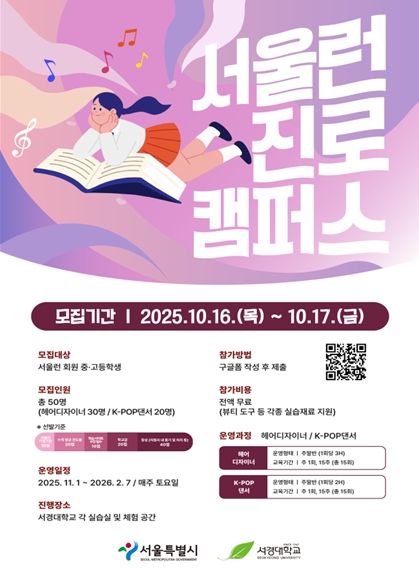 [뉴스스텝] 서울시 대표 교육사다리 ‘서울런’이 청소년의 진로지원과 취업역량 강화까지 책임지는 종합 플랫폼 ‘서울런3.0’으로 도약하는 첫걸음으로 서경대학교와 협력해 예체능 진로 지원을 본격화한다. K-뷰티(헤어·메이크업·네일), K-POP 댄스, 한국어 교육 등 5개 과정을 시범 운영하며, 중·고등학생 서울런 회원 130명을 선발해 11월부터 진행한다.
