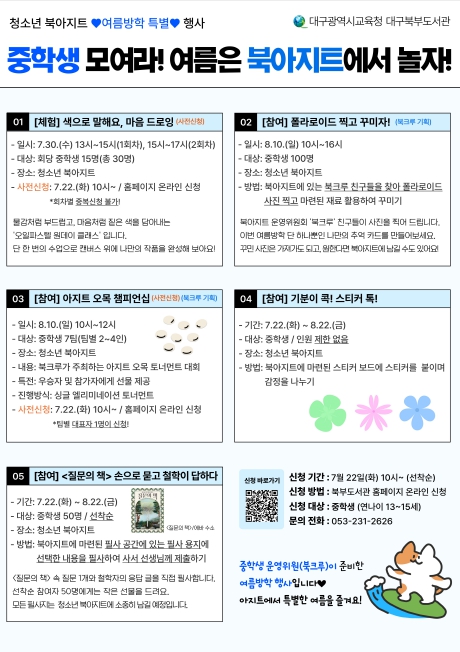 ▲ 중학생 모여라! 여름은 대구북부도서관 북아지트에서 놀자! |