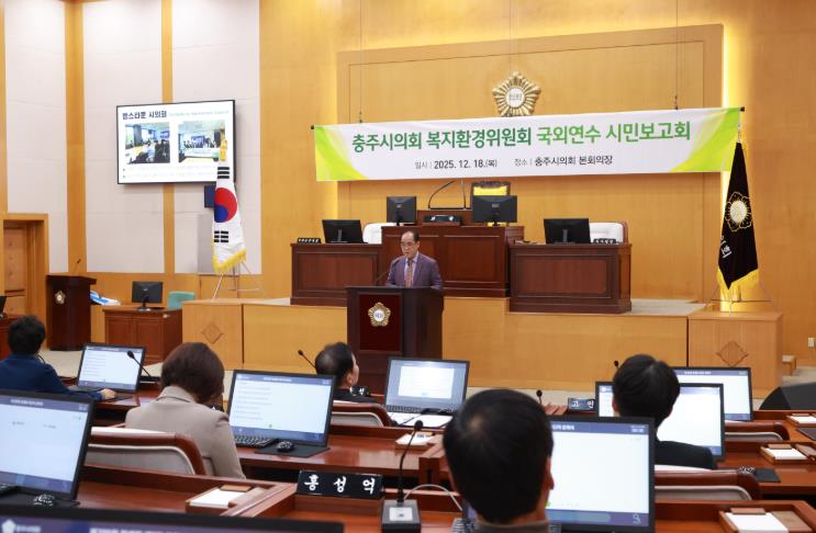 [뉴스스텝] 충주시의회 복지환경위원회는 12월 18일 충주시의회 본회의장에서 '국외연수 시민보고회'를 개최했다.