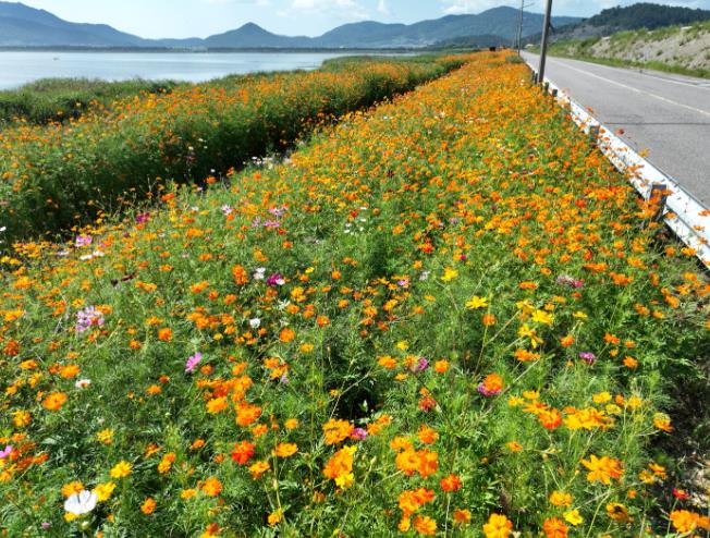 이번에 만개한 꽃은 일반 코스모스, 황화 코스모스, 백일홍과 같은 다채로운 가을꽃들로, 방조제 일원 약 42,000제곱미터(㎡)에 알록달록하게 펼쳐져 방문객들의 눈길을 사로잡고 있다.