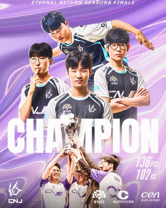 ▲ 충남콘텐츠진흥원, 충남 대표 게임단 CNJ 이스포츠 게임단 지원 ‘이터널 리턴 마스터즈 시즌8’ 우승으로 이어져 |