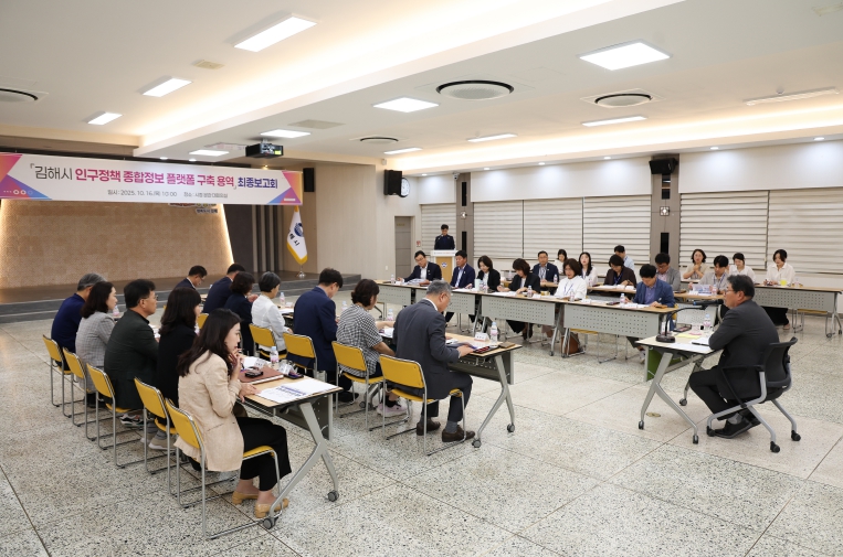 [뉴스스텝] 김해시는 16일 오전 10시 시청 대회의실에서 관계 부서장, 팀장 등 30여명이 참석한 가운데‘인구정책 종합정보 플랫폼 구축 용역’최종 보고회를 개최했다.