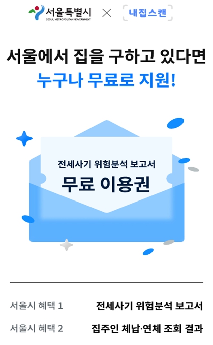 ‘전세사기 위험분석 보고서’ 이용 방법은 ‘서울주거포털’ 또는 ‘청년몽땅정보통’의 전세사기 위험분석 배너를 통해 민간 부동산 리스크 분석 플랫폼 ‘내집스캔’에 접속한 뒤, 서울시 쿠폰을 발급받아 이용하면 된다. 보고서는 서울 지역 임대차계약 예정자 1천 명을 대상으로 무료 제공되며, 계약을 고려 중인 주택의 주소를 입력하면 AI가 수집·분석한 정보를 제공받을 수 있다.