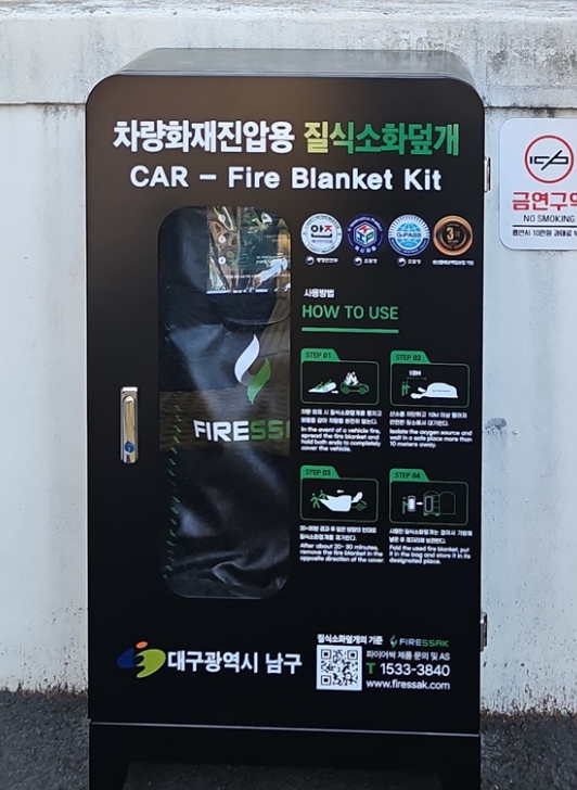 [뉴스스텝] 대구 남구는 전기차 화재대응 위해 행정복지센터, 공영주차장 등 관내 시설 31개소에 질식소화포 설치를 완료했다.