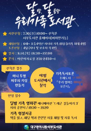 ▲ 대구서부도서관,‘달밤, 달콤한 우리 가족 도서관’운영 |