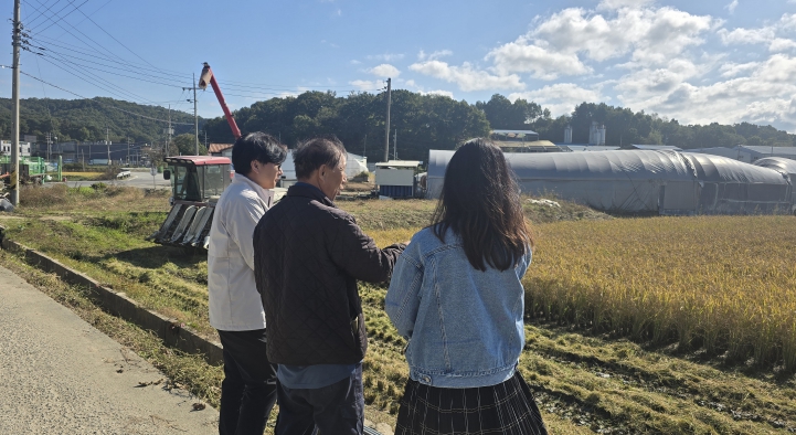 | ▲ 벼베기 현장 방문해 농민 의견 청취 |