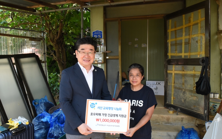 서산교육행정나눔회는 평소 지역 사회 공헌을 위해 연탄 및 장학금 기부 등 봉사활동을 펼쳐왔다. 이번 기록적인 폭우로 인해 특별히 긴급 지원이 필요하게 된 학생들에게 조금이나마 힘이 되기를 바라는 마음으로 이번 기금을 마련한 것으로 알려졌다.