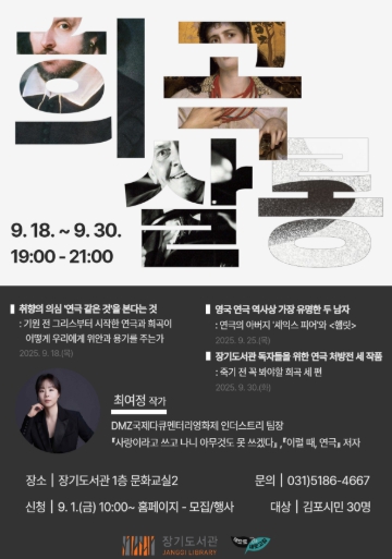 참여 신청은 9월 1일 오전 10시부터 장기도서관 홈페이지에서 온라인으로 선착순 진행되며 김포시민 30명이 대상이다.
