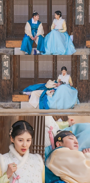 공개된 사진 속에는 차선책에게 범상치 않은 플러팅 스킬을 발휘하고 있는 이규의 모습이 포착돼 관심을 집중시키고 있다. 이규가 스스럼없이 차선책의 무릎을 벤 채 편안하게 눈을 감고 있는 것. 차선책은 어찌할 바를 모르고 당황한 채 얼어붙어 있어 호기심을 증폭시킨다.