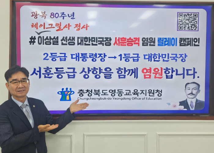 [뉴스스텝] 충청북도 영동교육지원청은 7월 29일 '이상설 선생의 대한민국장 서훈 승격 염원 릴레이 캠페인'에 참여하며 독립운동가 이상설 선생의 업적 재조명 및 최고 훈장 추서를 지지했다.