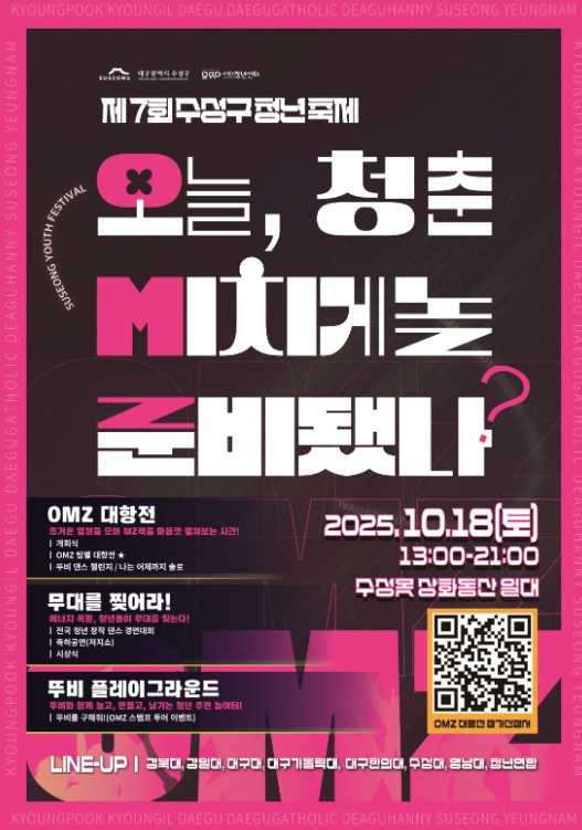 [뉴스스텝] 대구 수성구는 오는 18일 수성못 상화동산 일대에서 ‘2025 제7회 수성구 청년축제’를 개최한다.