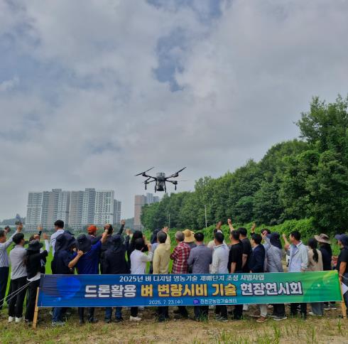 연시회는 △시범단지 운영 현황 안내 △생육 분석 기반의 정밀 시비 기술 소개 △농업용 드론을 활용한 이삭거름 변량 시비 시연 순으로 진행됐다.