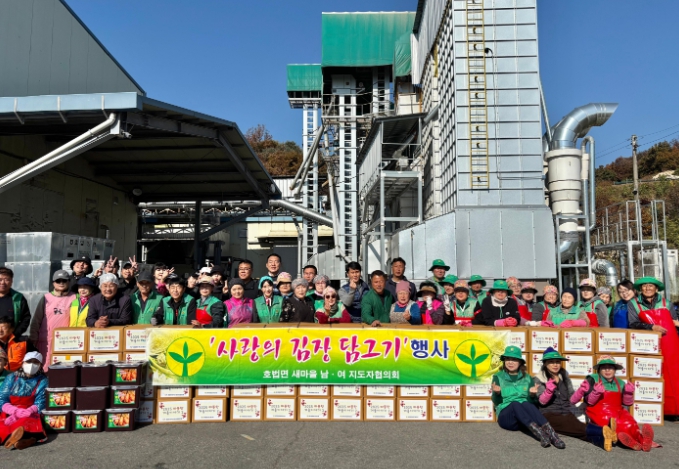 [뉴스스텝] 이천시 호법면은 지난 11월 11일 호법농협 미곡처리장에서 ‘사랑의 김장 나눔’ 행사를 열고 지역의 어려운 이웃들에게 따뜻한 손길을 전했다. 이번 행사는 호법면 새마을남녀협의회와 호법면 지역사회보장협의체, 호법농협 및 관계 공무원 등이 참여했다.