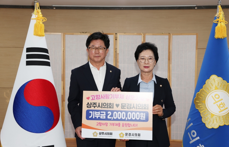 이날 상주시의회 의장실에서 평소 돈독한 관계인 두 시의회의 뜻을 모아 각 100만 원씩 고향사랑기부금을 기부해 지역 경제 활성화를 위한 상호협력을 이어나갔다.